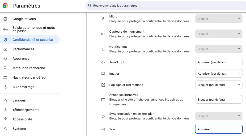 - Idéalement, paramétrez votre navigateur afin de lui accorder les droits de lecture audio adéquats !!